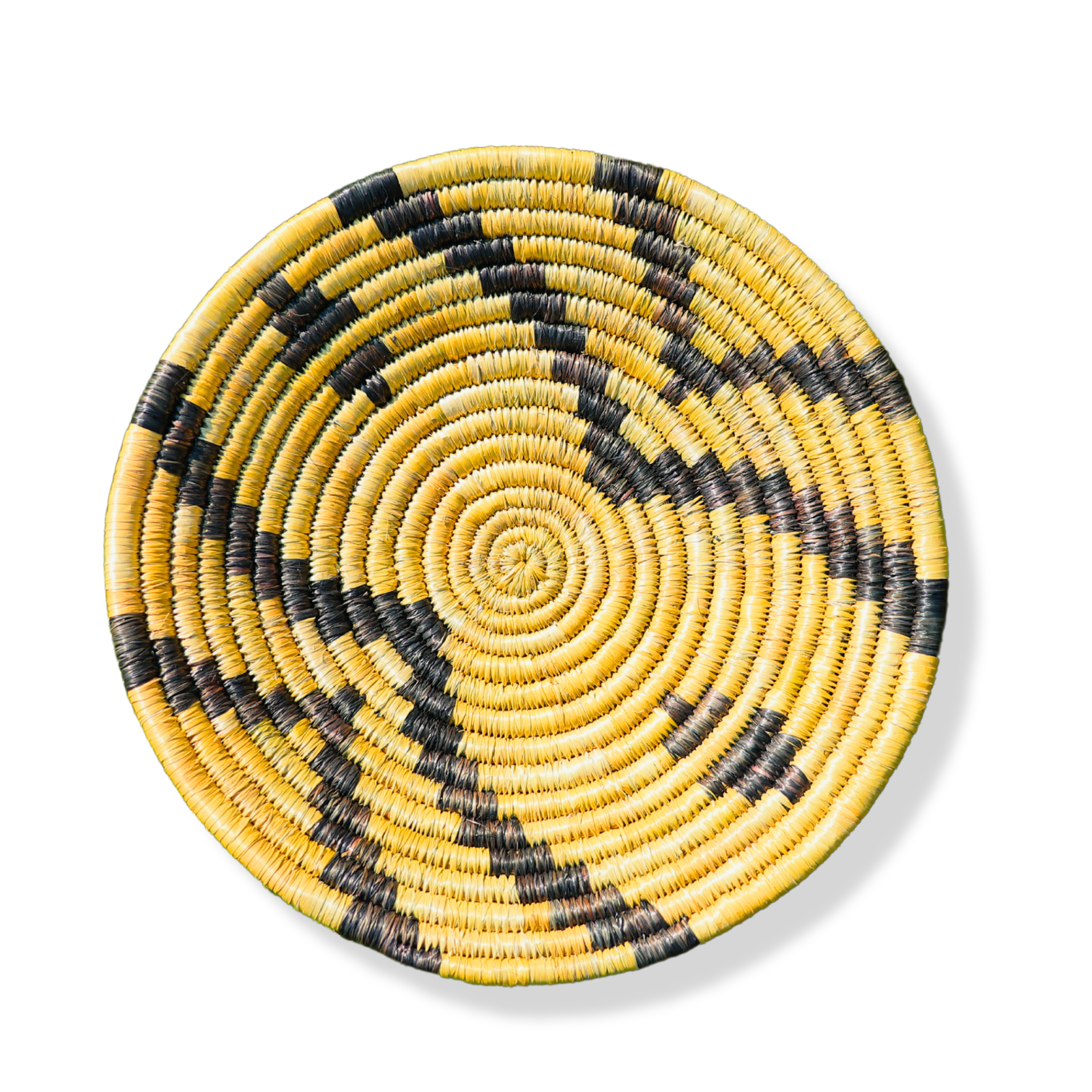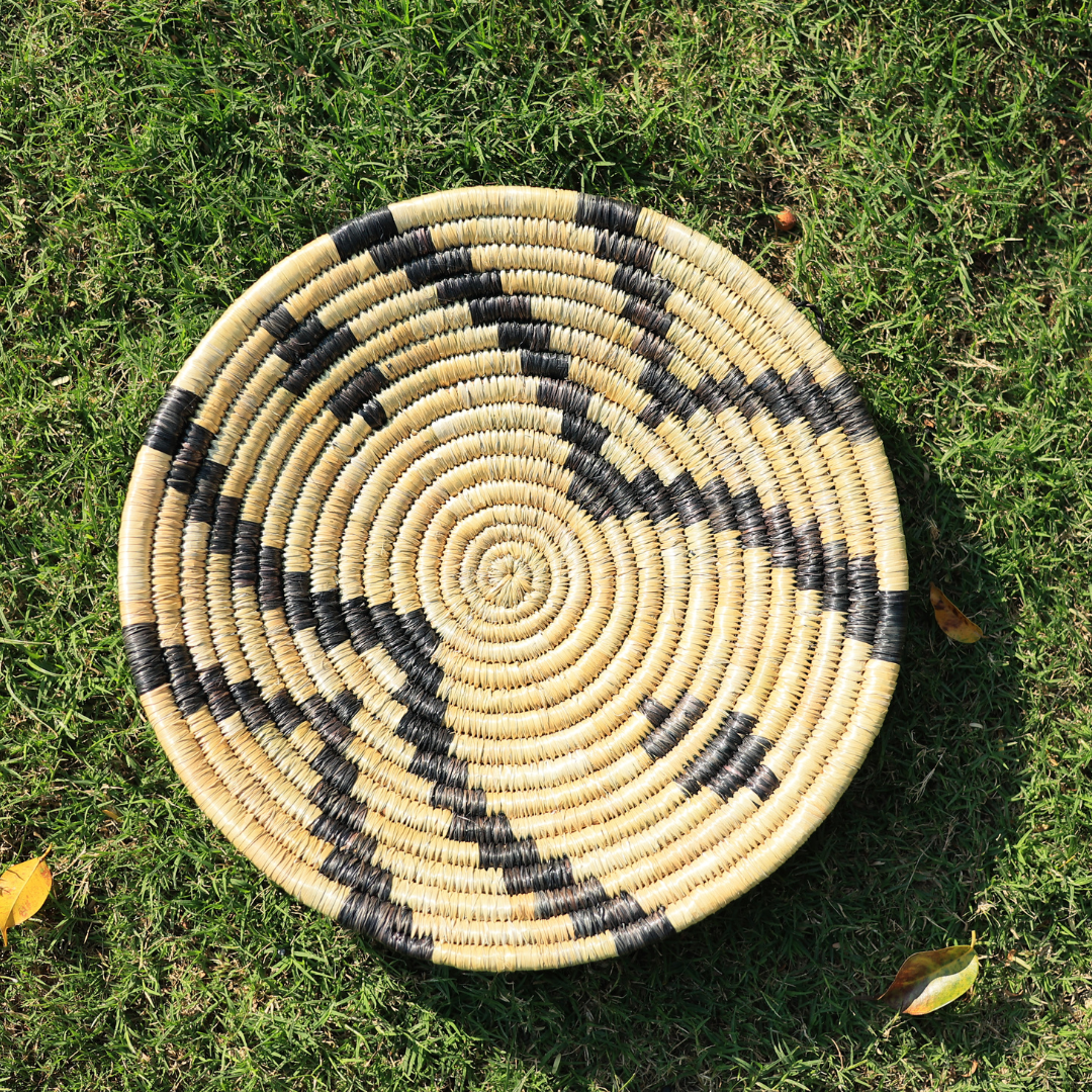 Infuse your living space with natural beauty and traditional charm with this handcrafted wall mat from Hands of Uttarakhand. Woven meticulously by local artisans using sustainably sourced natural grass, this circular wall mat features an eye-catching spiral design with bold black accents.