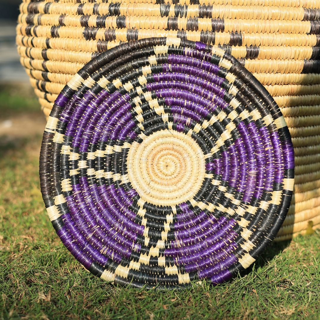 Infuse your living space with natural beauty and traditional charm with this handcrafted wall mat from Hands of Uttarakhand. Woven meticulously by local artisans using sustainably sourced natural grass, this circular wall mat features an eye-catching spiral design with bold black accents.
